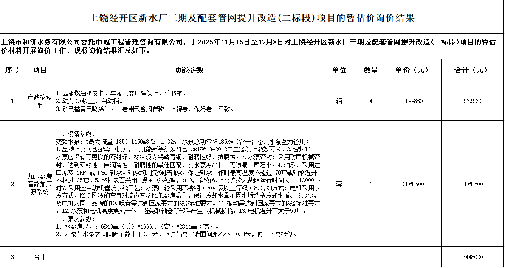 上饒國(guó)屬工程造價(jià)咨詢(xún)有限公司受上饒市和濟(jì)水務(wù)有限公司的委托,根據(jù)上饒市和濟(jì)水務(wù)有限公司的招標(biāo)計(jì)劃,遵循公平、公正、公開(kāi)、誠(chéng)信原則,對(duì)上饒市和濟(jì)水務(wù)有限公司的自來(lái)水應(yīng)急搶修材料供應(yīng)單位(二期)進(jìn)行公開(kāi)詢(xún)價(jià),誠(chéng)邀相關(guān)供應(yīng)商對(duì)采購(gòu)單位所需進(jìn)行報(bào)價(jià)。一、招標(biāo)需求1.項(xiàng)目名稱(chēng):自來(lái)水應(yīng)急搶修材料供應(yīng)單位(二期)2.采... [更多]